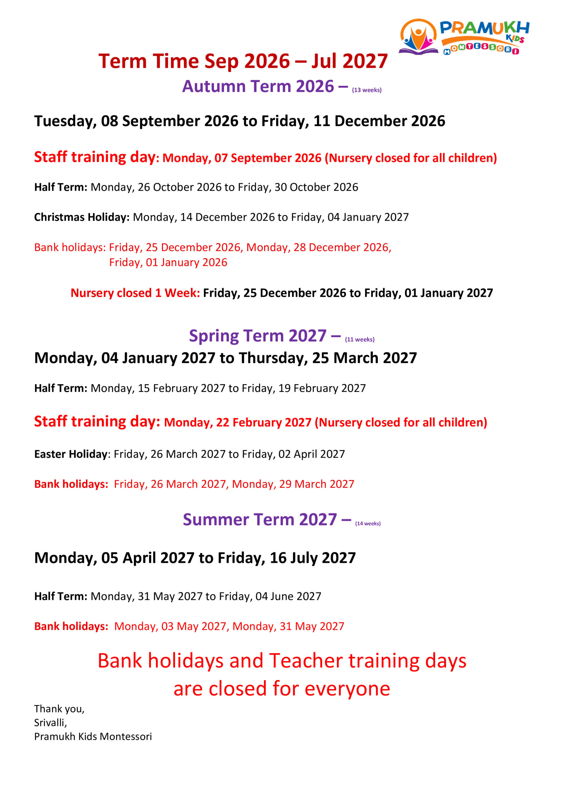 Every child is eligible to get 15 hours free funding from the next term after 3rd birthday.